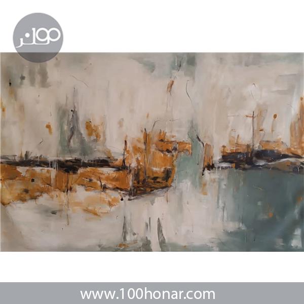 اثر آبستره (ترکیب آبی، خاکستری و زرد اُخرایی) مناسب دکور فضاهای مدرن، گالری، منزل یا دفتر کار، سال ۱... ادامه