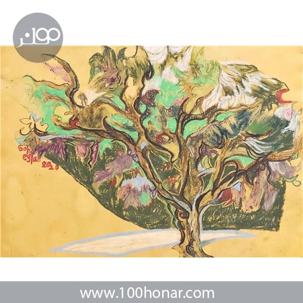سهیلا اینانلو، ۱۳۹۹، پاستل روغنی، از مجموعه برگ درختان سبز در نظر هوشیار/هر ورقش دفتری ست معرفت کردگار،