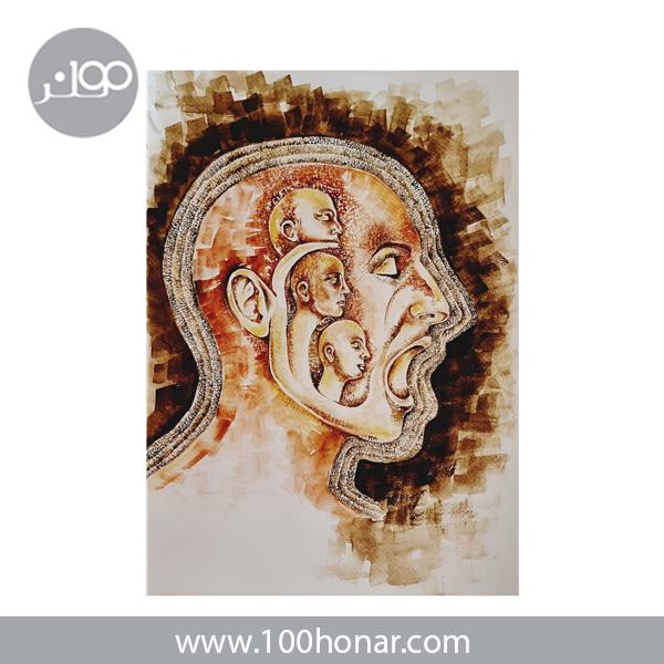 مفهوم اثر:از درون گشودگی دهان ، نه صدا بلکه اندیشه زاده شده، یکی در تامل دیگری و شاید سومی در جست و جوی حقیقتی گم شده، این اثر تلاشی برای نشان دادن لحظه ی تولد فکر است. آنجا که انسان در سکوت، خودش را میزایدو حقیقت را از ژرفای وجودش به جهان میگوید.