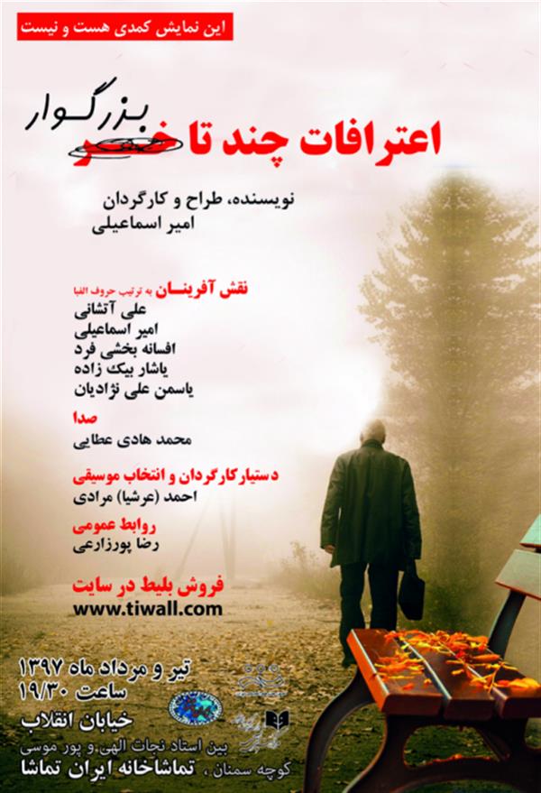 نویسنده، طراح و کارگردان:امیر اسماعیلی بازیگران:(بازیگران به ترتیب الفبا) علی آتشانی، امیر اسماعیلی، افسانه بخشی فرد، یاشار بیک زاده، یاسمن علی نژادیان