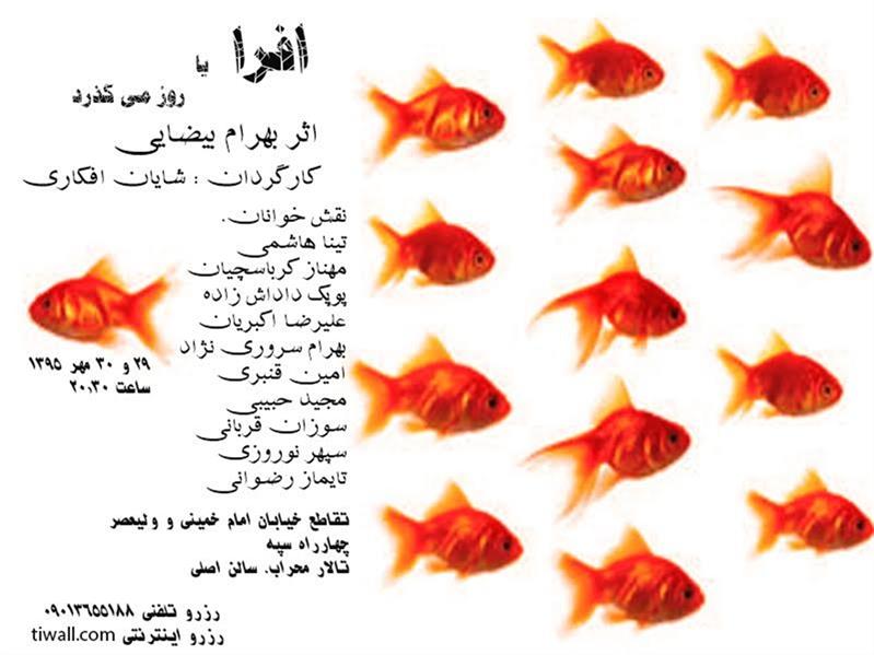 نویسنده:محمد یعقوبی کارگردان:مهران دهقانی بازیگران:(به ترتیب ورود) علی واقف، المیرا حسنلو، مهدی شمس، سحر بیرانوند، محمدرضا حزینی، صدف صفری، پگاه مصدق، امیر حسین نعیمی، خرم بانو عسکری، محمد مظلوم، مسعود حسینی، ویدا گوهری تهیه کننده:گروه تاتر بیگ بنگ