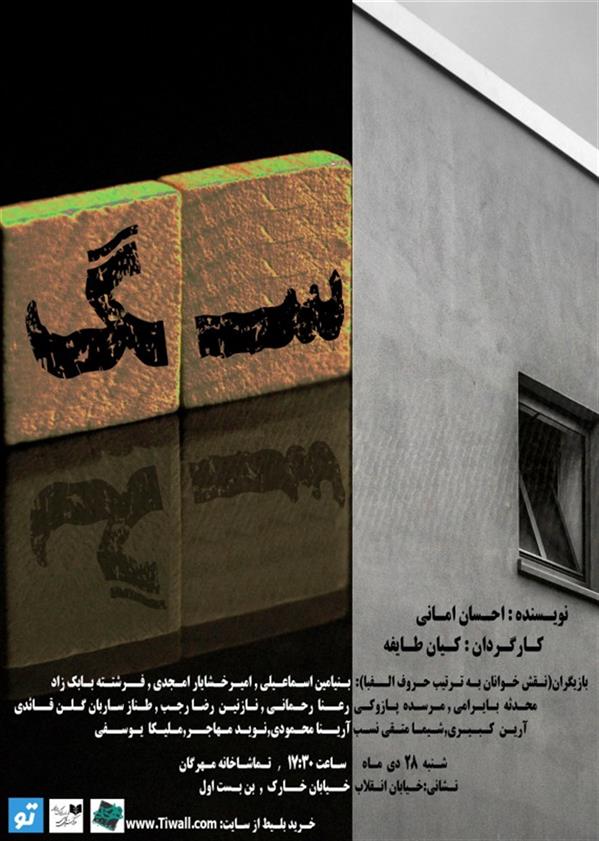 نویسنده:احسان امانی کارگردان:کیان طایفه بازیگران:(به ترتیب حروف الفبا) بنیامین اسماعیلی، امیرخشایار امجدی، فرشته بابک زاد، محدثه بایرامی، مرسده پازوکی، رعنا رحمانی، نازنین رضارجب، طناز ساربان، گلن قائدی، آرین کبیری، شیما متقی نسب، آرینا محمودی، نوید مهاجر و ملیکا یوسفی