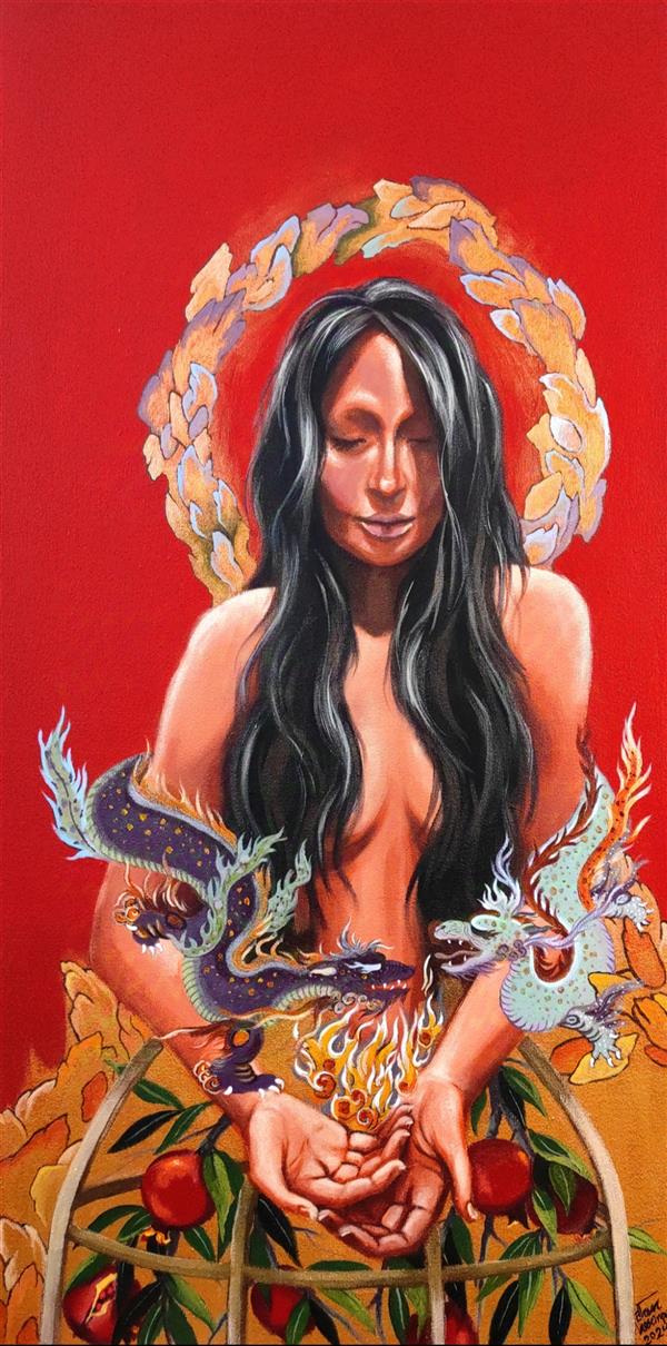 آکریلیک روی بوم دیپ ،سال خلق ۱۴۰۳,2024, عنوان اثر:رویا(نبردتابستان و پاییز/یلدا)... ادامه