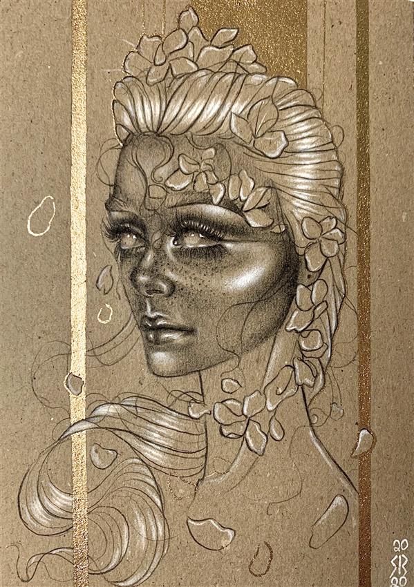 کنته و پاستل بر روی مقوا کرافت ٦٠٠ گرم و ورق طلا